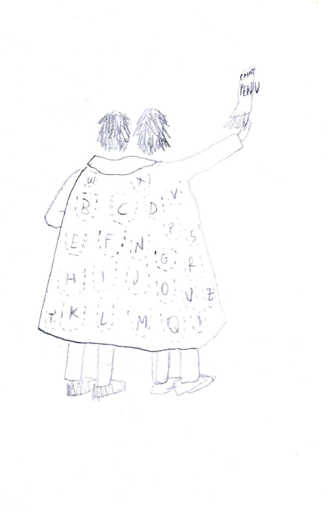 La porte-feuille est un manteau aux multiples poches permettant de classer les papiers rencontrés par ordre alphabétique. Une fois enfilé, les porteuses l’activent en récoltant et classant dans ses poches les papiers trouvés sur leur chemin. Témoins d’un lieu et d’un temps, ces feuilles se côtoient et forment une archive dans les coutures en mouvement.